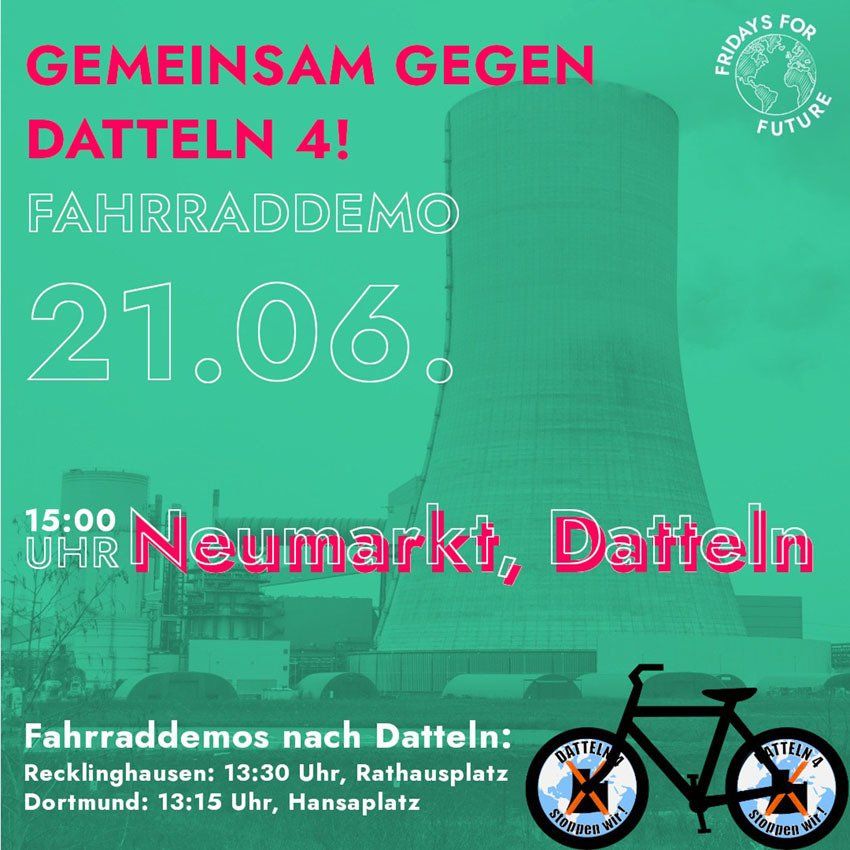 Wir rufen die Öffentlichkeit auf: Kommt mit uns am Sonntag, 21.06.20 nach Datteln (und am Freitag, 26.06.20 nach Garzweiler) und setzt mit uns ein klares Zeichen gegen den klimapolitischen Wahnsinn der Bundesregierung! Macht ein orangenes Kreuz an eure Fahrräder als Symbol des Widerstands gegen dieses Kraftwerk!