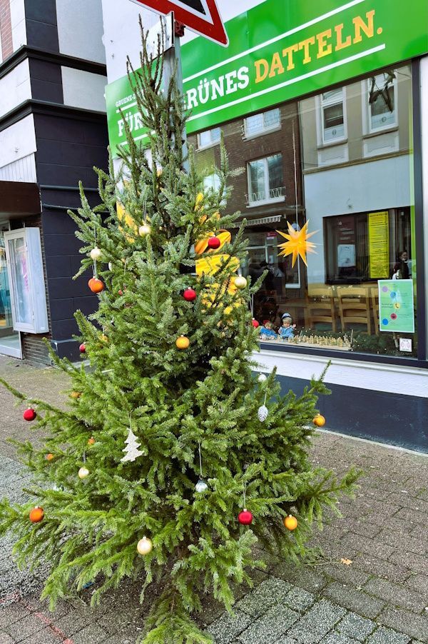 Tannenbäume, Lichterketten, erleuchtete Sterne und Engel gehören einfach in die Weihnachtszeit. Am grünen Büro in der Hohen Straße sorgen bunte Kugeln und musizierende Engel für die passende vorweihnachtliche Stimmung.