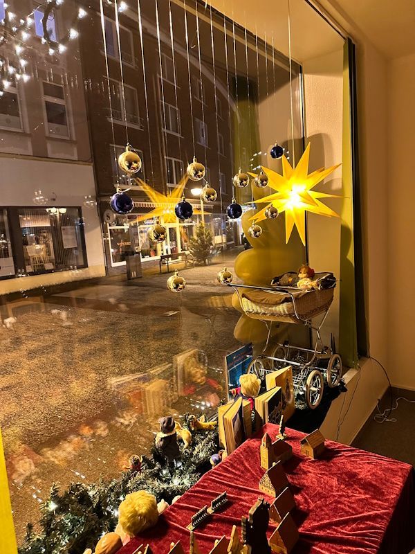 Martina und Klaus-Otto haben auch in diesem Jahr wieder den Weihnachtsbaum vor unserem Büro und das Schaufenster im grünen Büro vorweihnachtlich dekoriert, mit Büchern und Spielzeug aus den 60er Jahren.