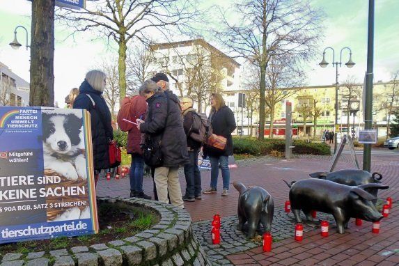 Grüne, Linke und Tierschützer aus Oer-Erkenschwick, Datteln und Waltrop haben sich am Samstag am Berliner Platz bei den Schweinchen getroffen. Mit Plakaten, Flugblättern, Bannern und Grablichtern haben sie friedlich ihren Protest gegen die geplante Erweiterung von Westfleisch zum Ausdruck gebracht. Mit dabei waren auch Mitglieder der Dattelner Wählergemeinschaft Die Grünen..