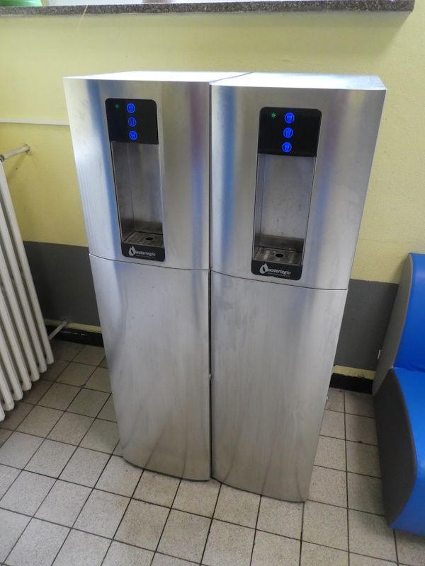 Im Eingangsbereich der Wolfhelmschule Gesamtschule, Teilstandort Datteln, ist ein Trinkwasserspender installiert.