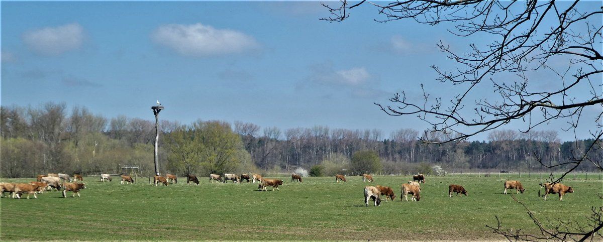 Sie locken die Besucher an - und sie halten sie von sensiblen Bereichen fern: die Aubrac Rinder und die Störche.