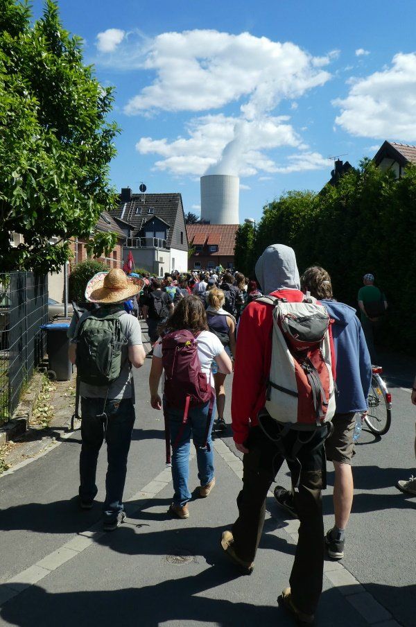 Gegen 16 Uhr endet der Tag der lautstarken Proteste gegen die Inbetriebnahme des Kraftwerks Datteln mit einem Zug durch die Meistersiedlung.