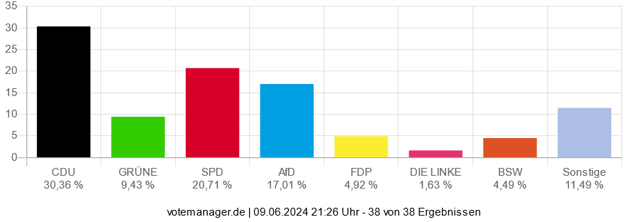 Parallel zu den Verlusten im Bund haben die Grünen auch in Datteln nurmehr 9,4 % der Stimmen auf sich vereinigen können. Klimaschutz bleibt ein Kernthema der Partei. Während es 2019 vielen Wählerinnen und Wählern als wichtiges Thema erschien, rückte das Thema in diesem Wahlkampf in den Hintergrund. Der drohende von Menschen gemachte Klimanotstand mit seinen immer wiederkehrenden Hitze- und Dürreperioden bzw. den Hochwasserkatastrophen wird von immer mehr Menschen eher als Normalzustand denn als gefährliche und zu bekämpfende Bedrohung empfunden.