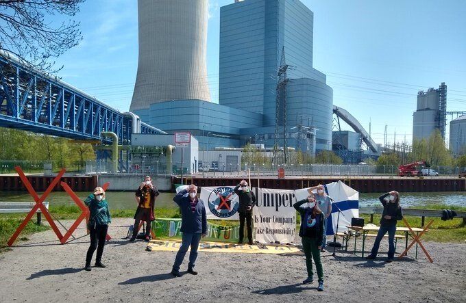 Datteln 4 stoppen wir! Mit dem nötigen Sicherheitsabstand und Mund-Nasenschutz hat der BUND NRW heute eine 90-minütige Mahnwache gegen das neue Kraftwerk abgehalten. Anlass war die heutige Jahreshauptversammlung des finnischen Fortum-Konzerns. Fortum hält die Mehrheit am Kraftswerksbetreiber Uniper und kann Datteln 4 verhindern. Diese Möglichkeit hat auch der finnische Staat, der wiederrum die Mehrheit an Fortum hält.