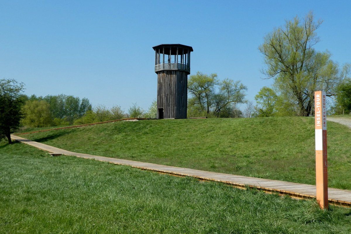 zum Rhein-Heine-Kanal, auf den wir in der Nähe des Holzturm des japanischen Künstlers Tadashi Kawamata treffen, der 2010 im Rahmen der Emscherkunst auf einer Anhöhe in der Nähe des Wasserkreuzes von Emscher und Rhein-Herne-Kanal installiert wurde.