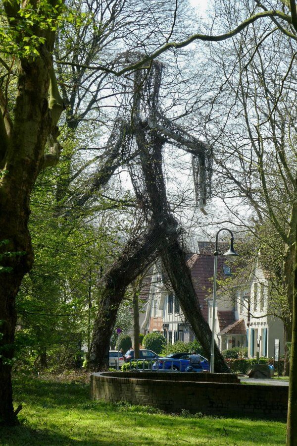 An die 1908 abgeteufte Zeche Teutoburgia, die 1925 schon nach wenigen Jahren stillgelegt worden war, weil sich die hier geförderte Kohle nicht zur Koksgewinnung eignete, erinnern noch die einstige Maschinenhalle und der Förderturm. Mit diesem Turm, einem "Deutschem Strebengerüst" aus dem Jahr 1908, korrespondiert jetzt der hoch aufragende "Fussgänger", eine Drahtgitterskulptur von Monika Günther und Manfred Walz.