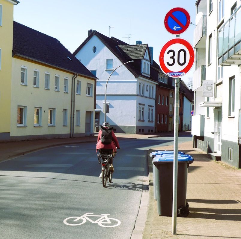 Beträgt in Einbahnstraßen die zulässige Höchstgeschwindigkeit nicht mehr als 30 km/h, kann Radverkehr in Gegenrichtung zugelassen werden, wenn