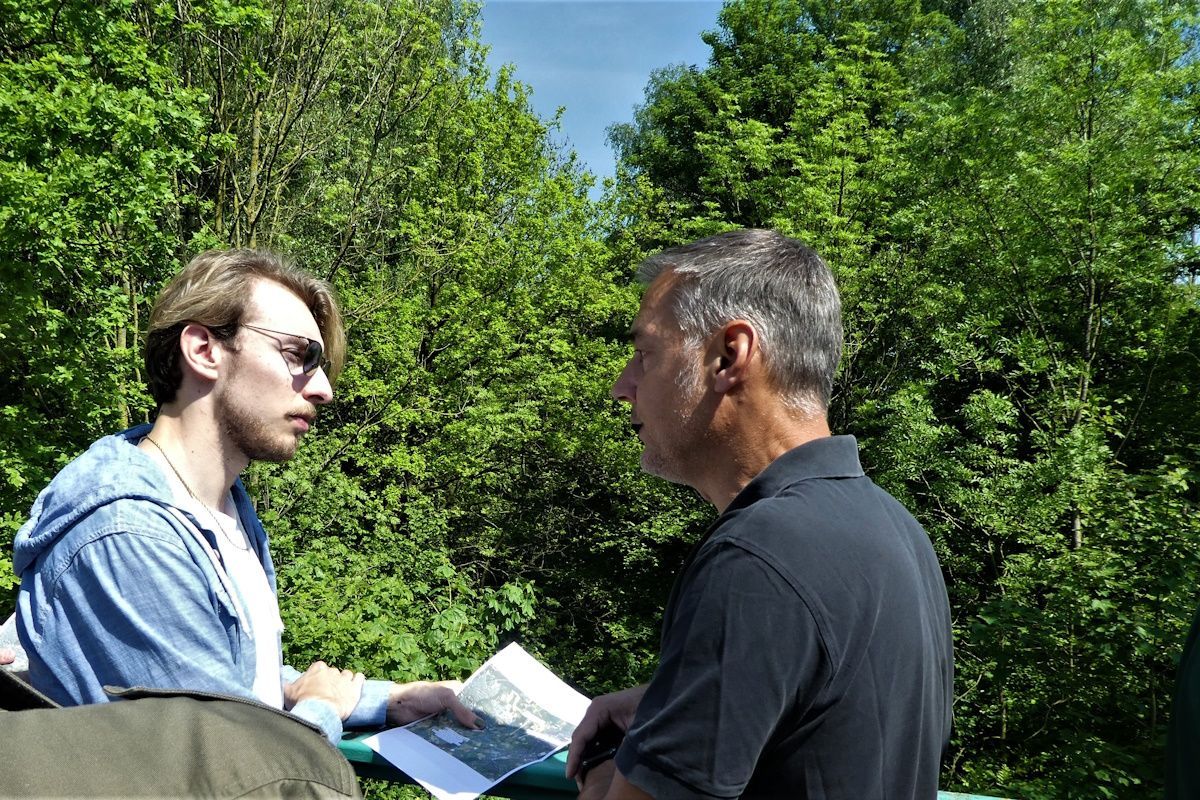 Foto: Bei der Besichtigung der ehemaligen Zechenbahntrasse: Maximilian Großer (Grüne Datteln) und Thomas Krämerkämper (BUND)