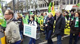 Demonstration in Düsseldorf - unter anderem mit dabei: unsere Ratsmitglieder Sigrid Lichtenthäler und Theodor Beckmann (Mitte, vor dem Transparent, im Gespräch vertieft)