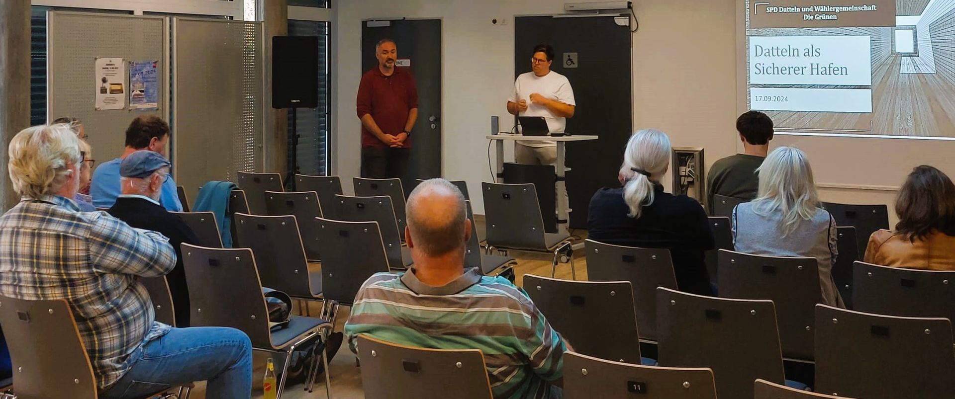 Ausgehend vom Beitritt der Stadt Datteln in den Verbund sicherer Hafen” der Seebrücke sowie den immer wieder aufflammenden Debatten im Bereich der Asyl- und Migrationspolitik haben die beiden Parteien auf die Situation vor Ort geblickt. Nach einem Film, der in die zivile Seenotrettung einführte, entstand eine angeregte Diskussion zur aktuellen politischen Lage nach dem Anschlag von Solingen und der kommunalen Verantwortung in der Unterbringung und Integration von Geflüchteten und neuzugewanderten Menschen. mehr ansehen ...