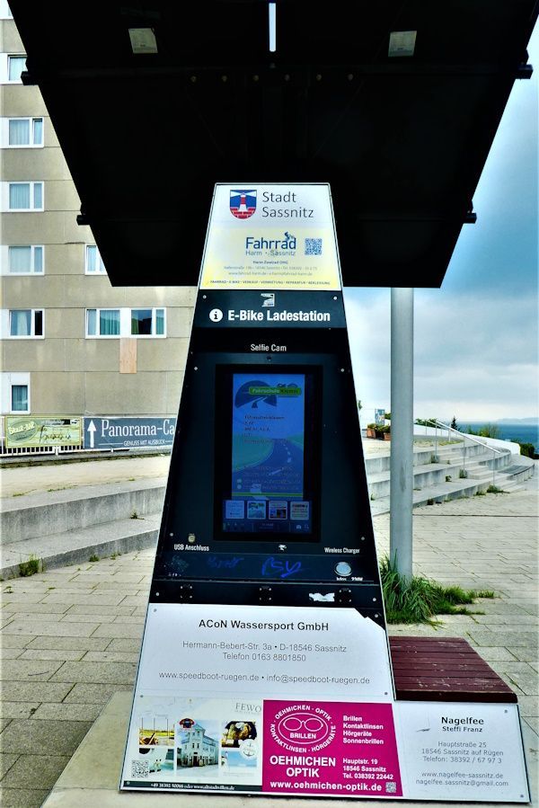 Eine E-Bike-Ladestation in Sassnitz auf Rügen, fotografiert im Sommer 2023
