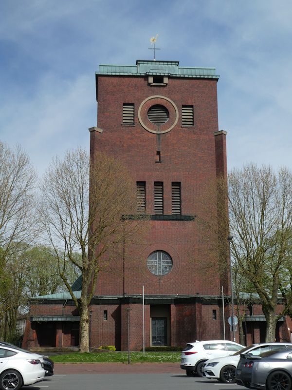 Nach dem Ersten Weltkrieg entstanden im Ruhrgebiet – gegen die Orthodoxie der allgegenwärtigen Neugotik im Kirchenbau der ersten Jahre des 20. Jahrhunderts – eine Reihe von expressio-nistischen Kirchen. Die fabrikähnliche Monumentalität des Gesamteindrucks ist dem renommierten Essener Architekten Alfred Fischer (1881-1950), einem Vertreter dieser Reform-Bewegung, geschuldet, ebenso wie die parallel gereihten, schlichten Strebbögen, die die Stufung zwischen den Hochwänden des Hauptschiffes und den niedrigen Seitenschiffen überspannen.